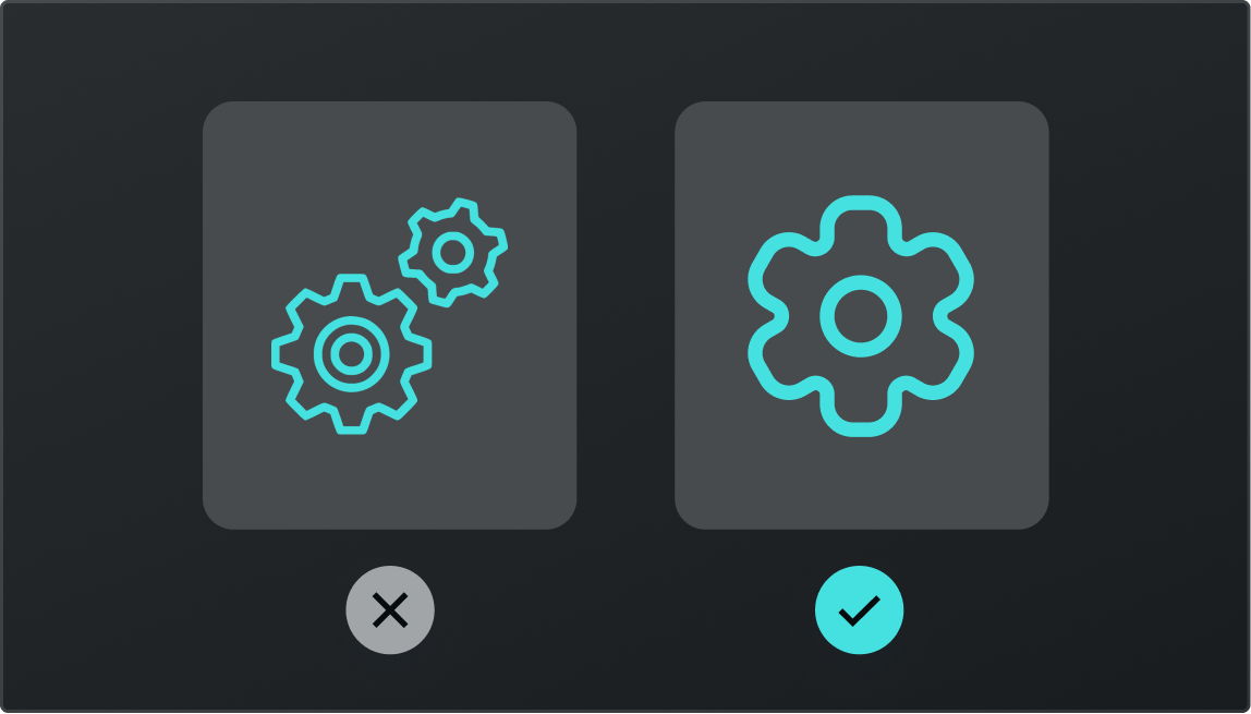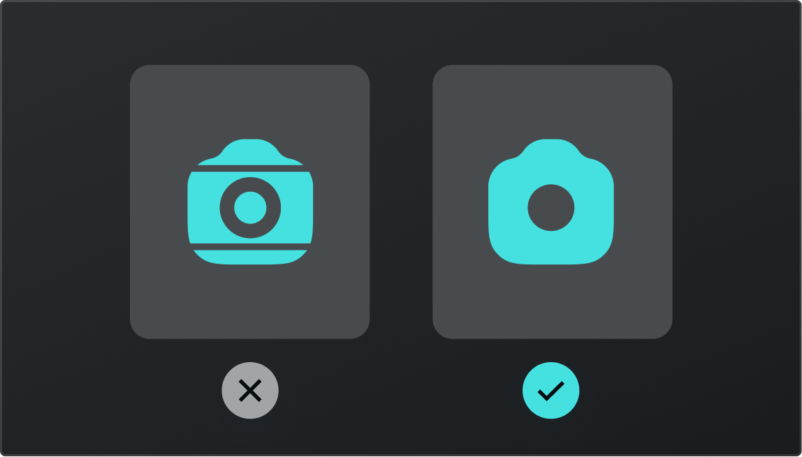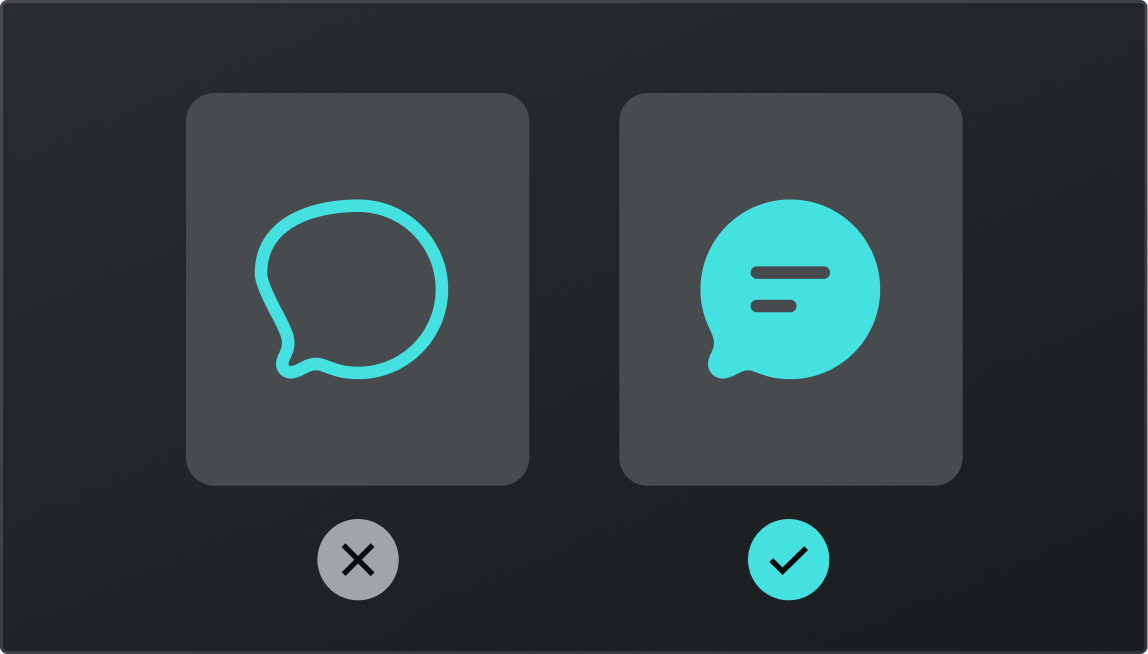 Icons shapes should be bold, ensuring readability and clarity, even in small sizes.